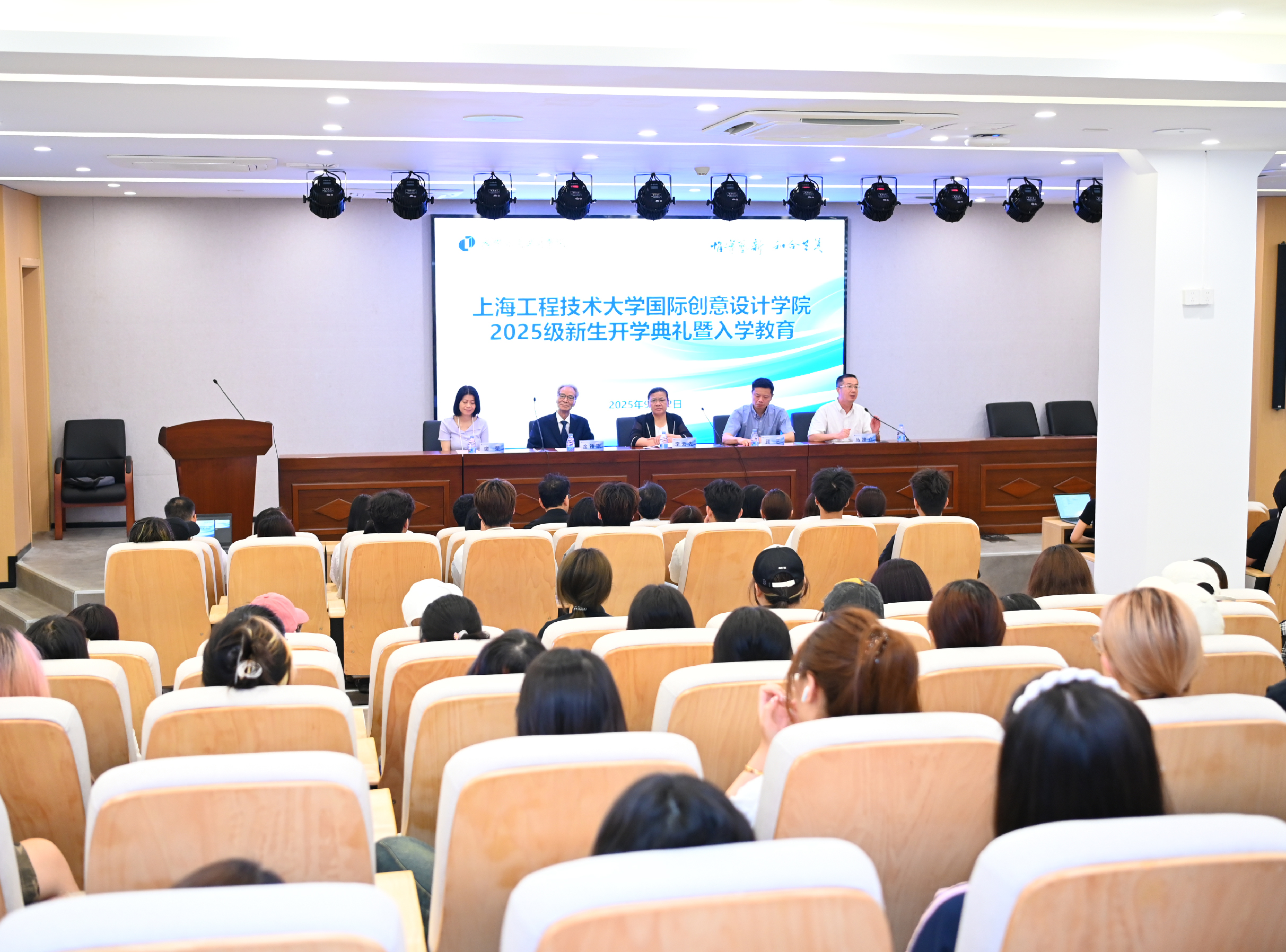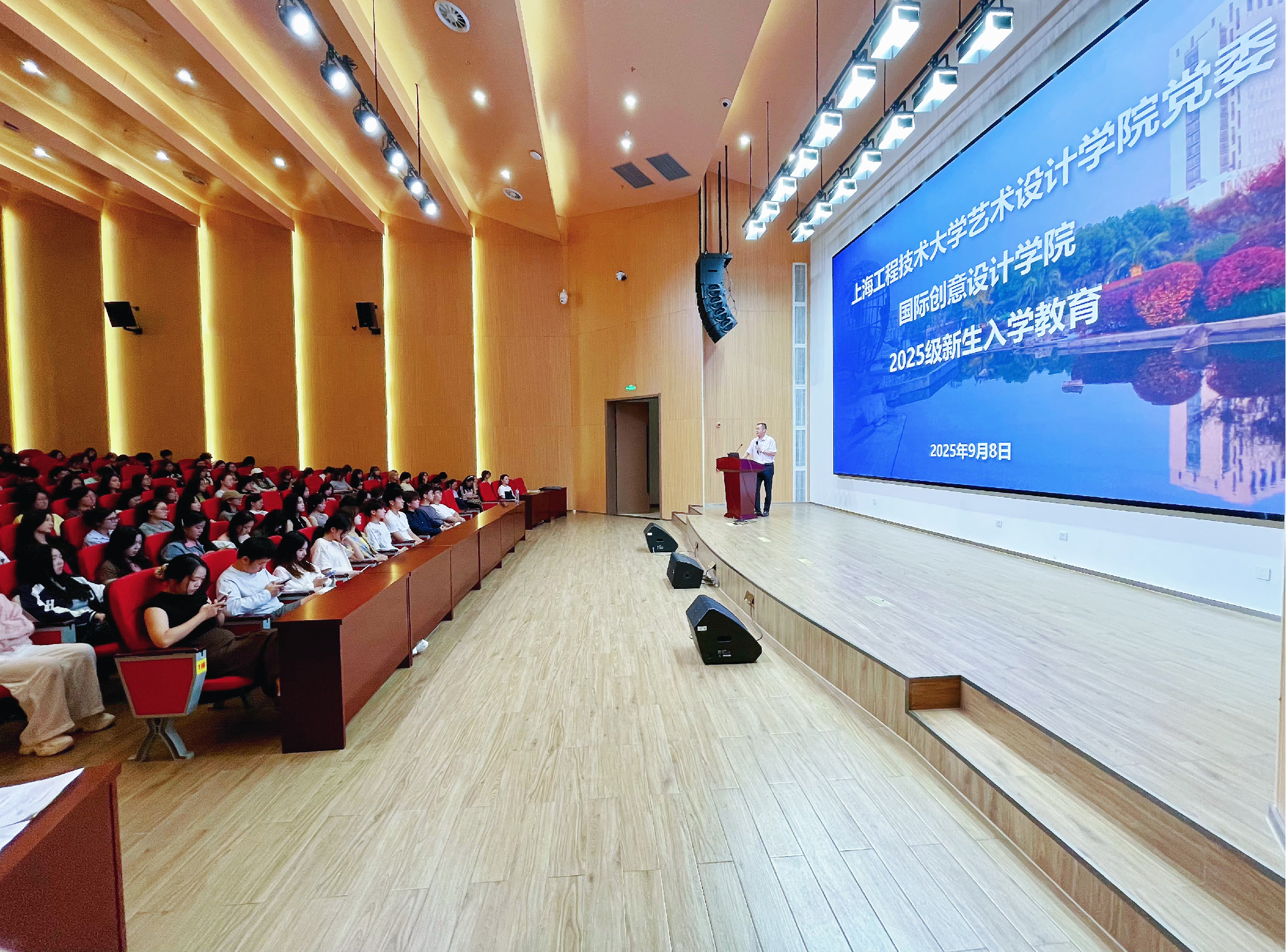 9月12日上午,800cc全讯白菜网主站2025级新生开学典礼暨入党启蒙教育在长宁校区教学楼一楼报告厅举行。艺术设计学院党委书记李云先,800cc全讯白菜网主站院长顾艺、韩方院长金锺琪,艺术设计学院党委副书记马建立,800cc全讯白菜网主站副院长樊荣,教师代表及全体新生出席。此次活动由马建立主持。典礼在庄严的国歌声中拉开帷幕。李云先代表学院欢迎全体新生,并以《以青春之笔,绘红色信仰》为题,展示近年落地的红色作品与毕业生党员案例...