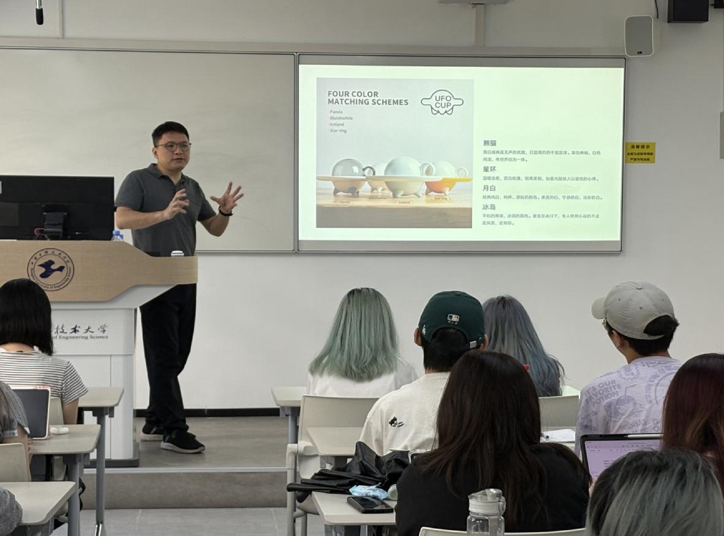 9月11日,2025“老凤祥杯”上海礼物设计大赛启动仪式在樊荣老师的《设计系统思维》课程中正式启动。作为已经走过十九年的品牌赛事,“上海礼物”设计大赛始终以传承上海文化、讲述上海故事、展现海派风情为宗旨,现已发展成为展示城市魅力和设计创新的重要平台。启动仪式上特别邀请到了大赛召集人、视觉中国创意社区联合创始人姜伟辉老师和中国工信部工业设计领军人才、鲤遇文化及膳佳家居创始人陈文老师。陈文老师为同学们带来一...