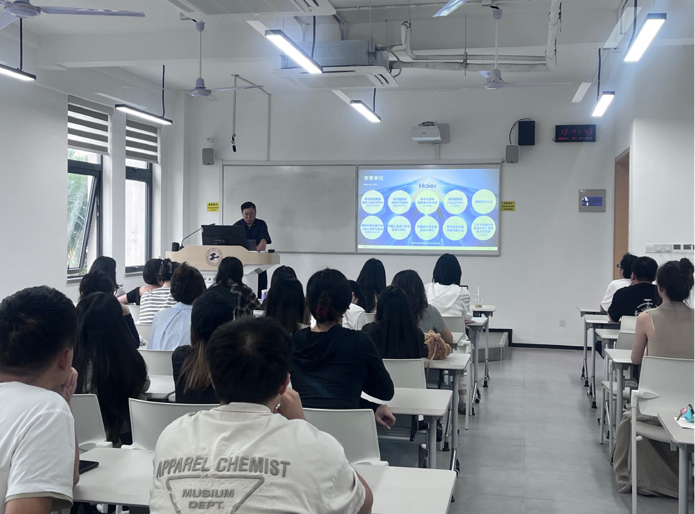 9月12日下午,“从科学设计到产业实践:海尔的创新图景”专题讲座在长宁校区报告厅举行。活动特邀海尔(上海)家电研发中心设计总监吉皓先生担任主讲,为师生带来了一场产学研深度融合的交流盛宴。在讲座环节,吉皓总监系统阐释了海尔的设计理念与创新路径。他以企业发展历程为切入点,详细介绍了覆盖全球的品类布局与前瞻性设计战略,重点分享了上海研发中心的CMF实验室、人因工程实验室等创新平台,以及AIGC、VR等前沿技术的应用...